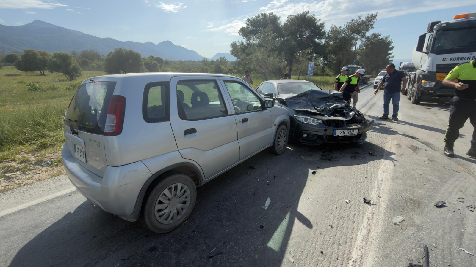 Girne kazasına bağlı Arapköy’ün girişinde meydana gelen trafik kazasında iki araç kafa kafaya çarpıştı.